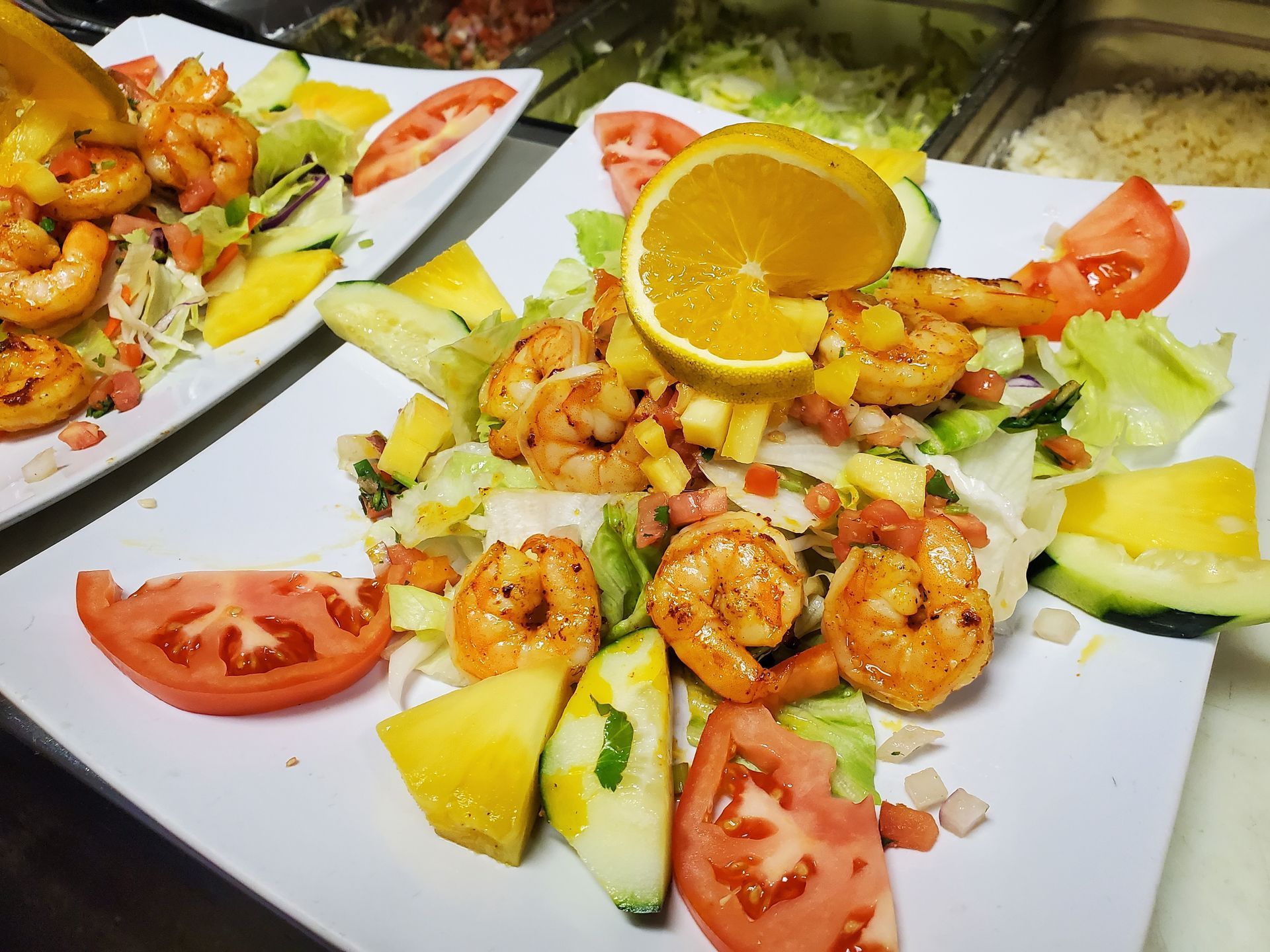 Mix of shrimp, bell peppers, onions, capers and green olives in Veracruz sauce. Served with rice and house salad