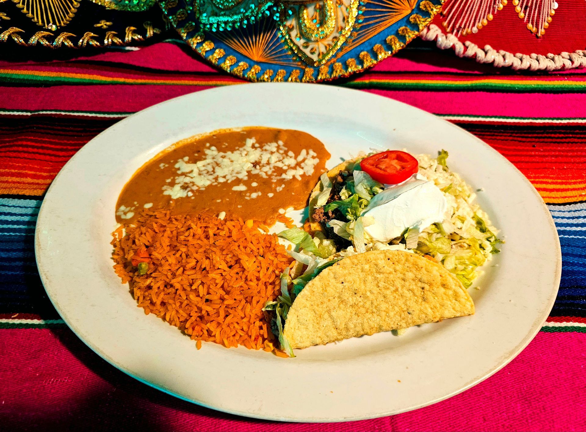 cheese, lettuce, tomato and sour cream. Includes beans and fiesta rice
