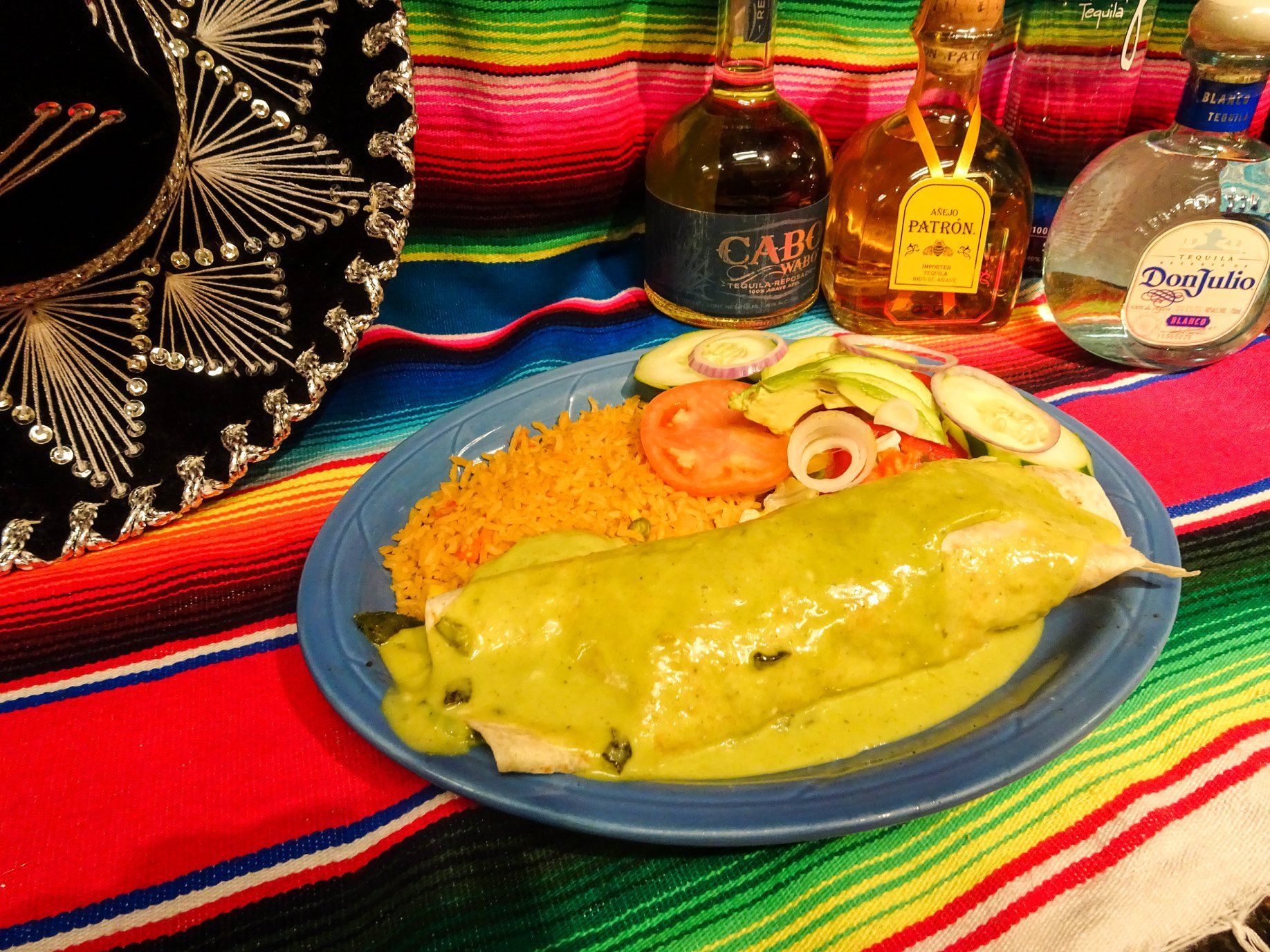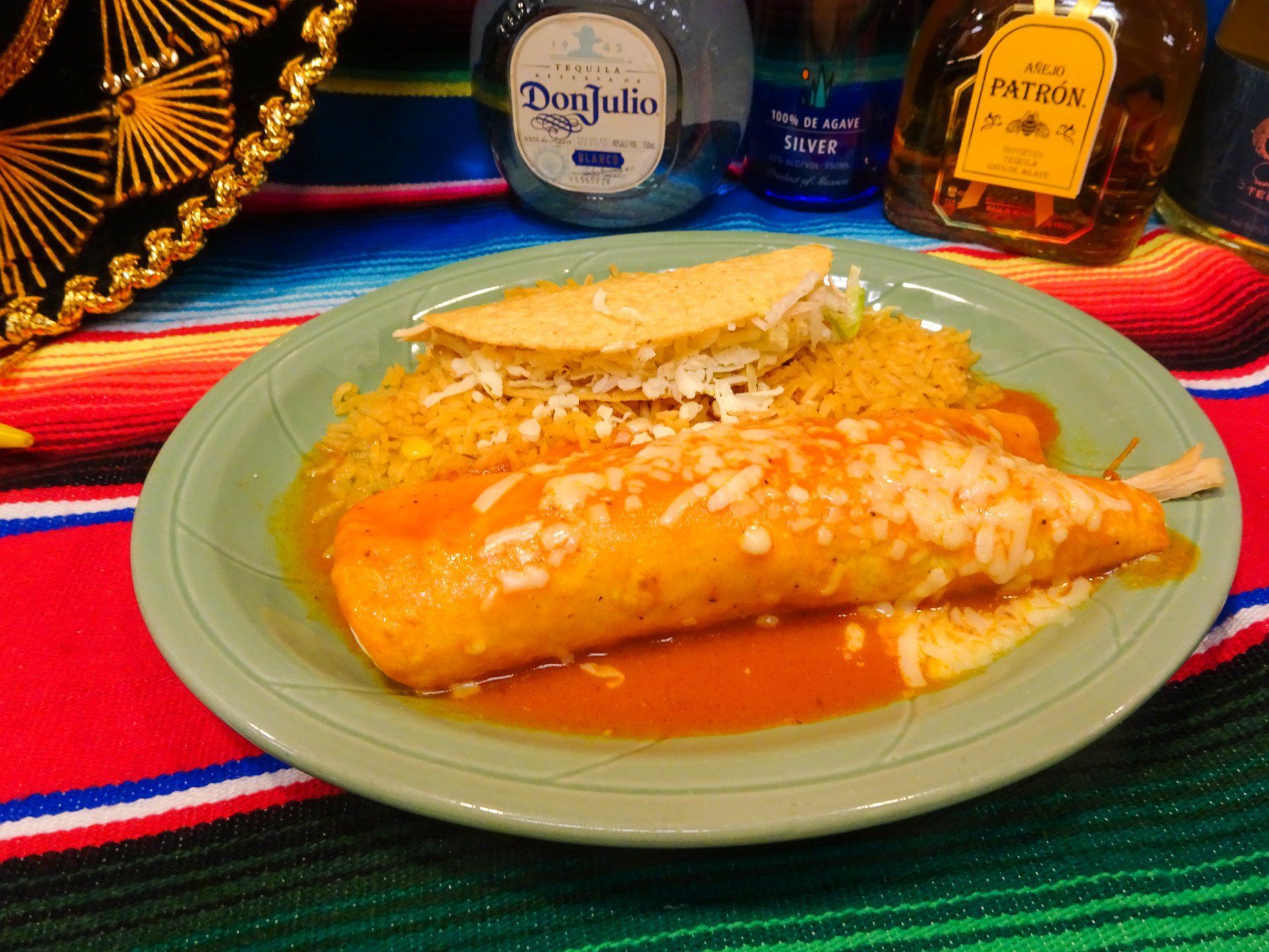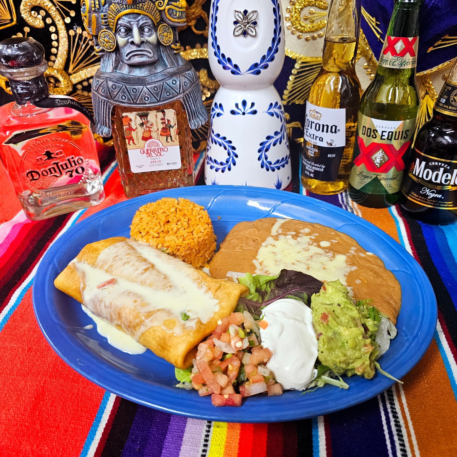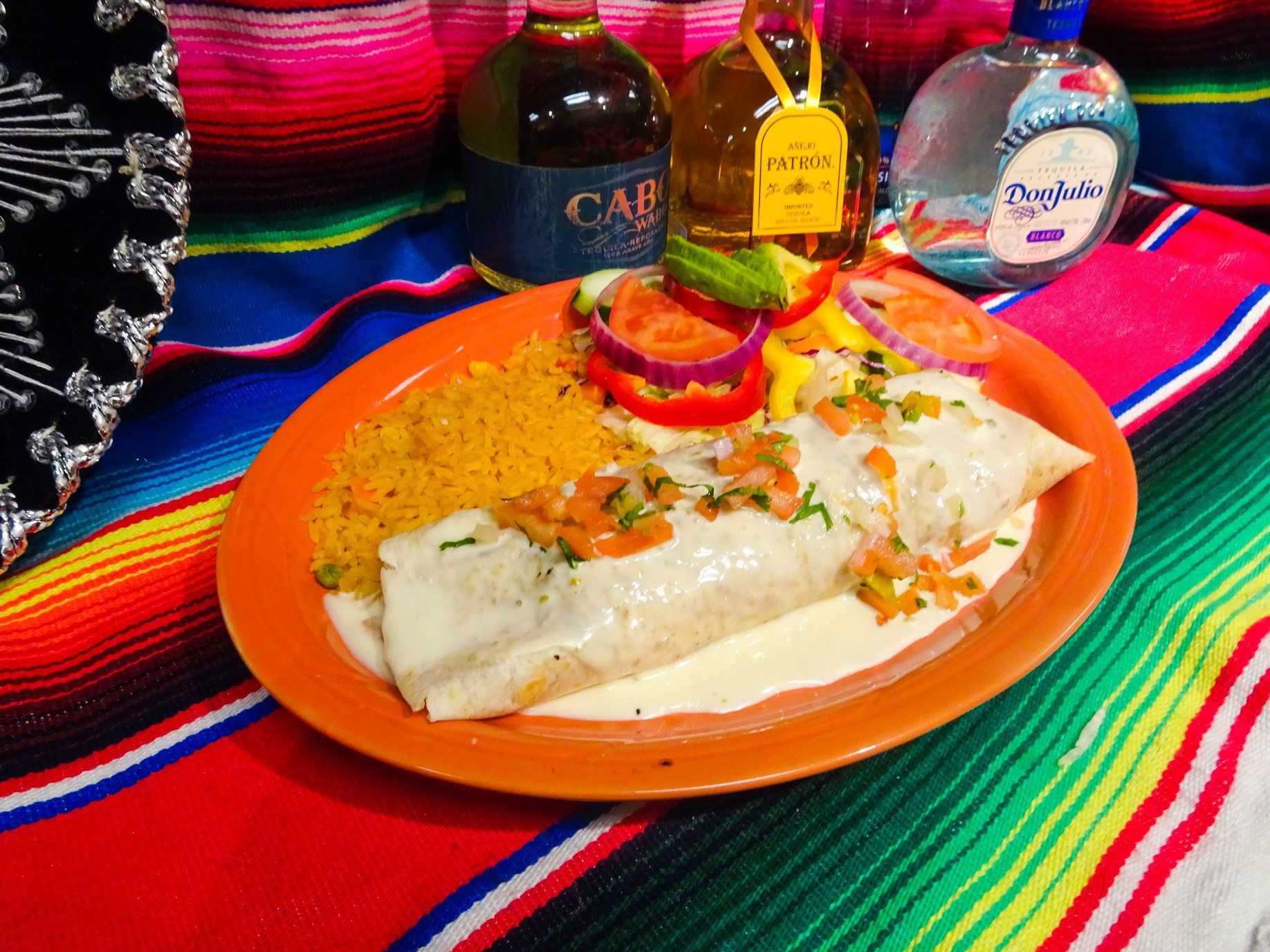 steak) wrapped inside a flour tortilla. Topped with our fiesta cheese sauce and served with mexican rice and our delicious crema salad