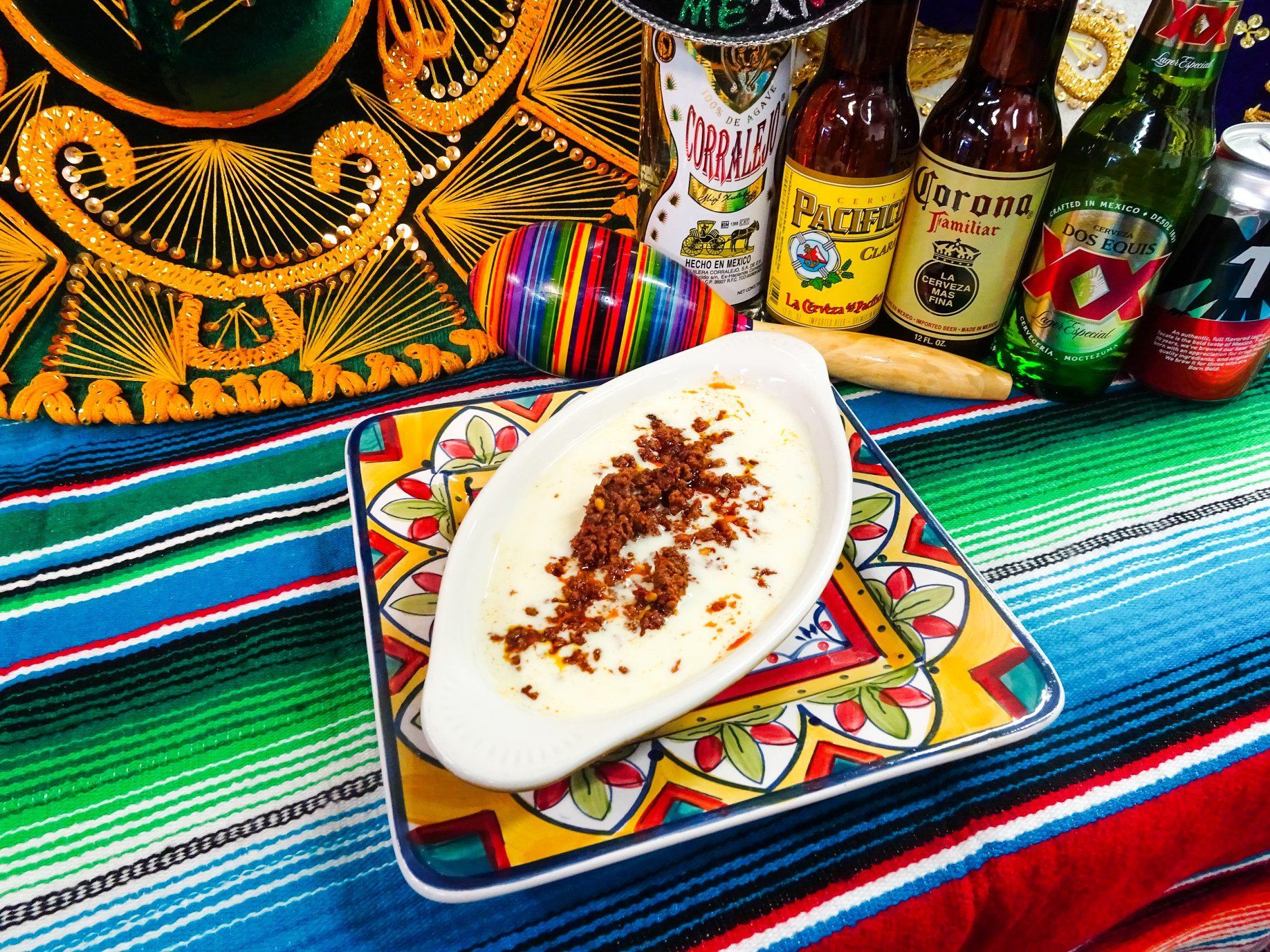 Our traditional fajita with your choice of grilled chicken, steak or mixed, served on a top of a bed of our crispy homemade chips then topped with creamy cheese dip