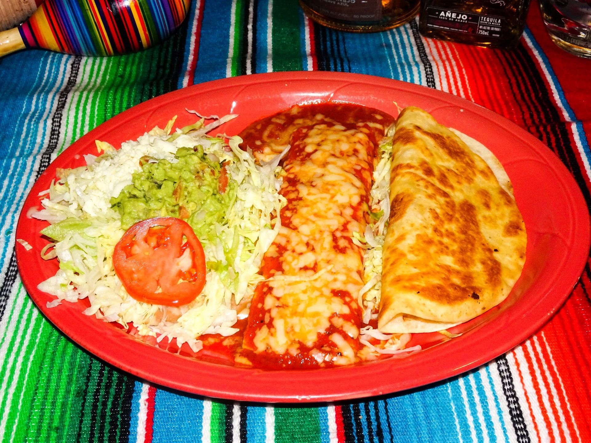 and one ground beef) topped with our special enchilada sauce, lettuce, tomatoes and sour cream