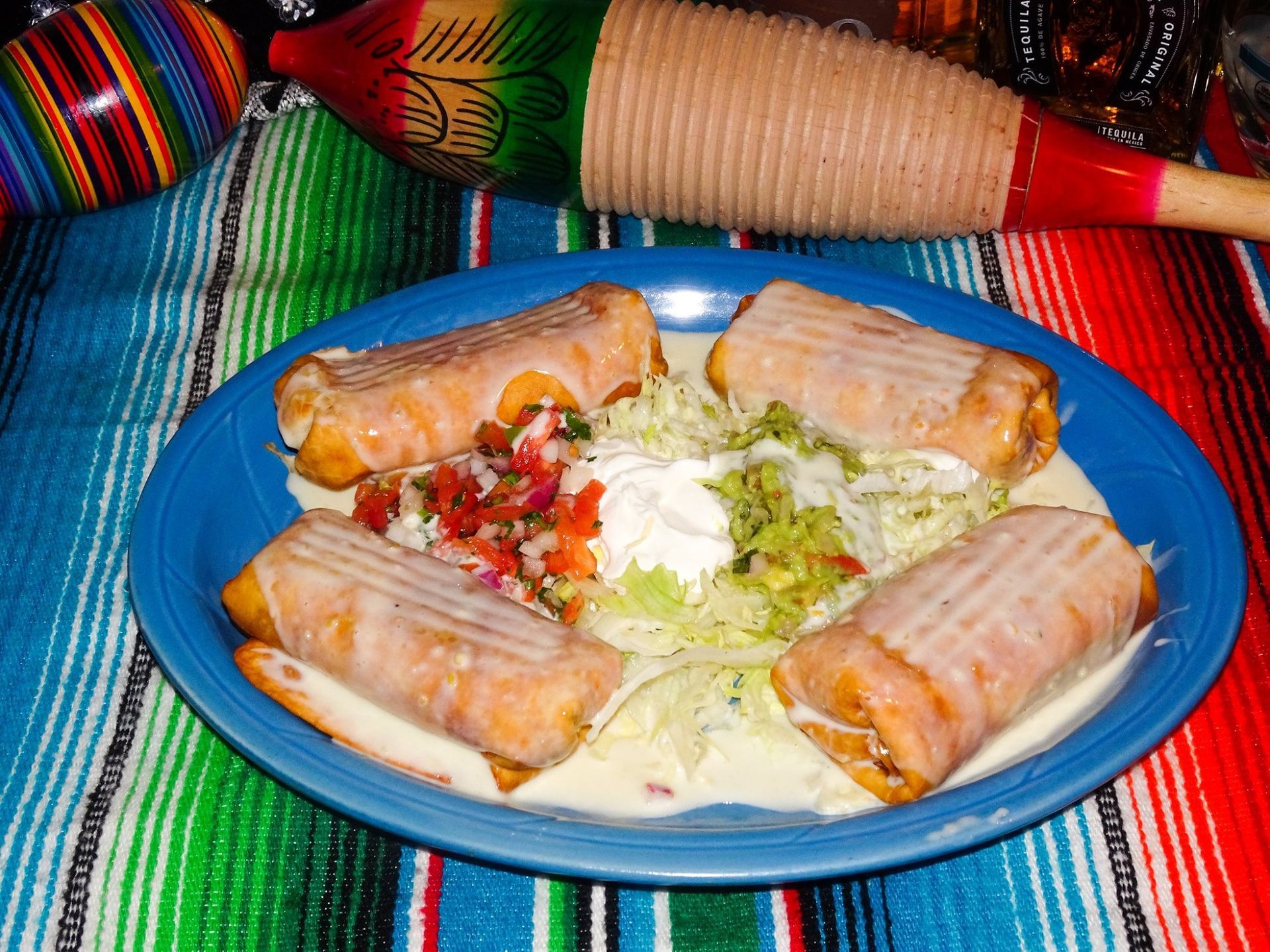 Two deep fried chicken or beef taquitos served with rice, beans, lettuce, pico, guacamole and sour cream